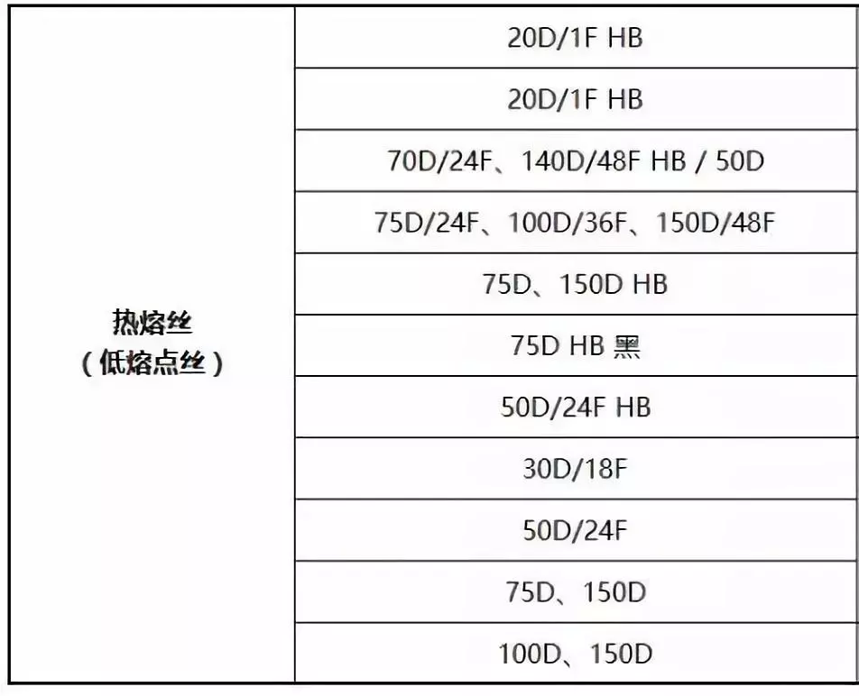 熱熔絲,又稱低熔點纖維,是今年來發(fā)展最為迅速的功能性纖維之一。熱熔絲分為滌綸熱熔絲和錦綸熱熔絲兩種,可通過調(diào)整原料特性,將熔點控制在85℃至180℃之間。